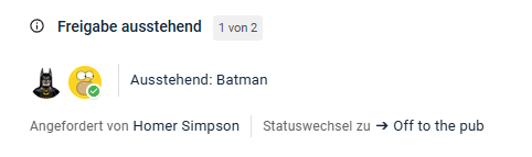 In den Workflow-Einstellungen kann nun gewählt werden, ob - bei mehreren Freigebenden - nur eine einzelne Person genügt oder ob alle hinterlegten Personen freigeben müssen, damit der Workflow-Schritt als freigegeben gilt. Zusätzlich wird der aktuelle Freigabestatus (wie viele Personen haben bereits freigegeben) direkt im Aufgabendetail sichtbar.