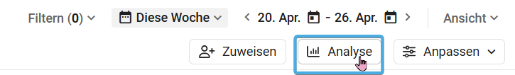 Zusätzlich zu den vorhandenen Optionen in der Auslastungsansicht kannst du über Optionen ein Analysepanel einblenden. Dieses Panel bietet dir weitere Auswertungen und Kennzahlen rund um die Auslastungsdaten. Beispielsweise kannst du hier aggregierte Werte, prozentuale Auslastungen oder andere statistische Angaben zu den angezeigten Ressourcen und Zeiten sehen.