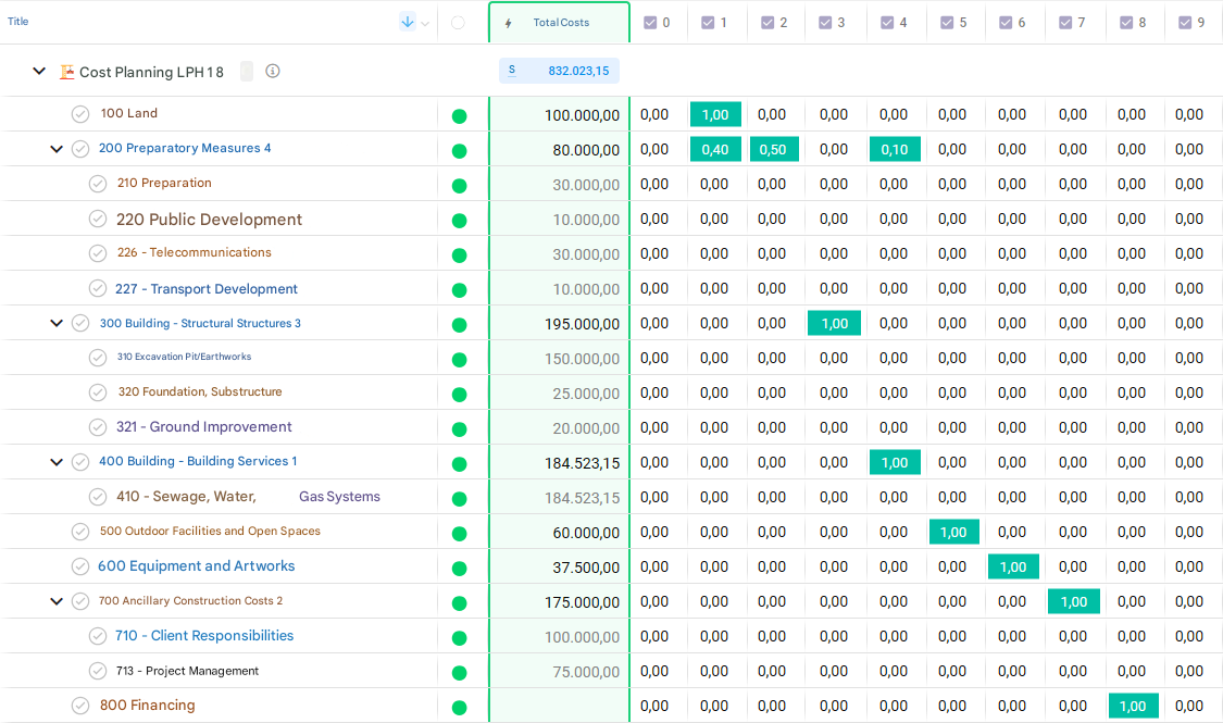 This clear mapping of cost control units to cost groups simplifies cost allocation across multiple areas. It enables flexible, needs-based planning that meets the requirements of different projects and organizational units.
