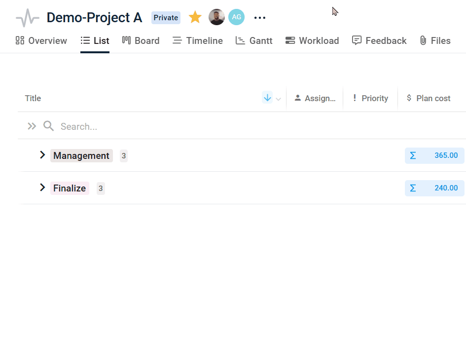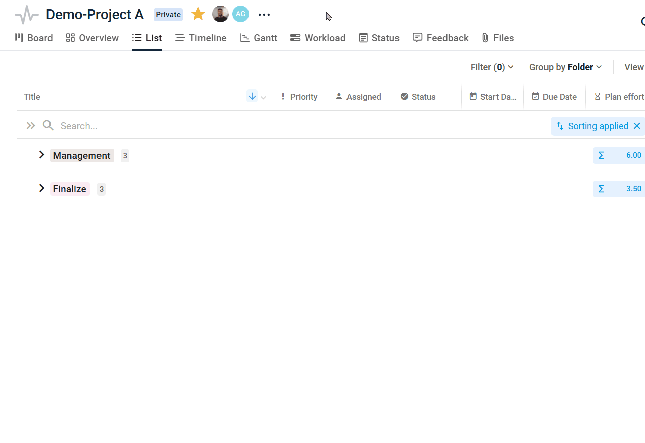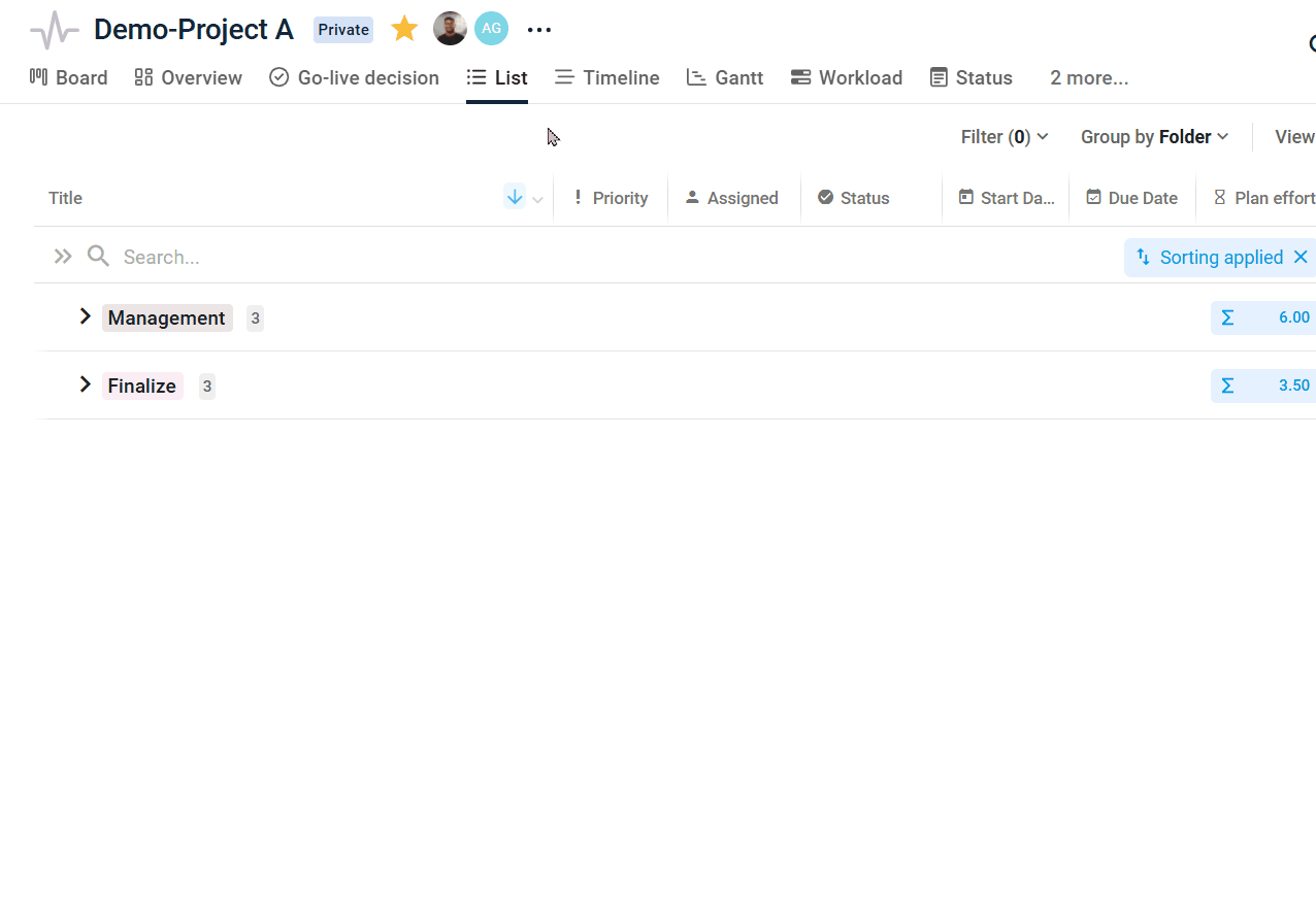 In project management, you can define which tabs within a project are visible, in what order they appear, and which tab is loaded first when opening the project. In addition, saved views and individual tasks can be pinned as their own tabs in the project. These adjustments enable optimized and more efficient use of the project view.