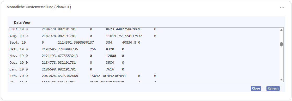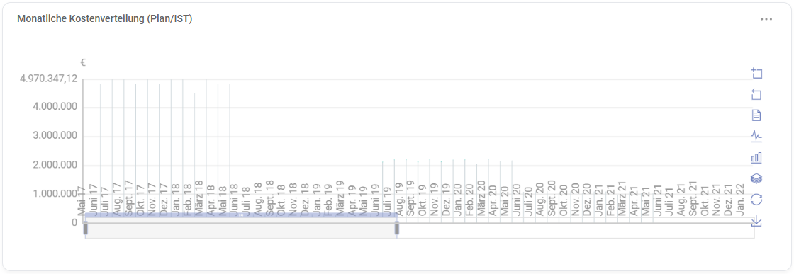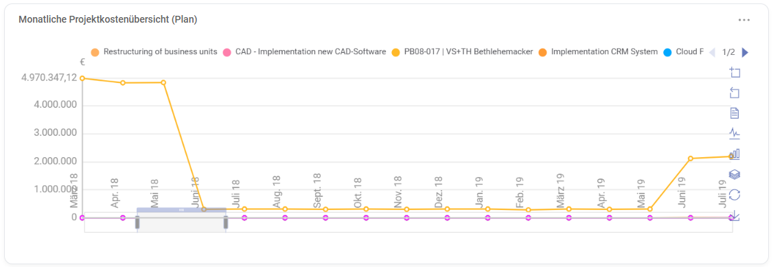 - Shows: Comparison of monthly costs according to plan and actual (across the selected projects).