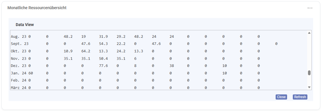 Monthly Resource Overview