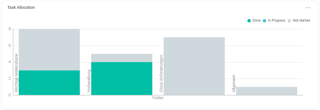 - Shows: Allocation of tasks by a specific attribute – e.g. status, category (depending on configuration).