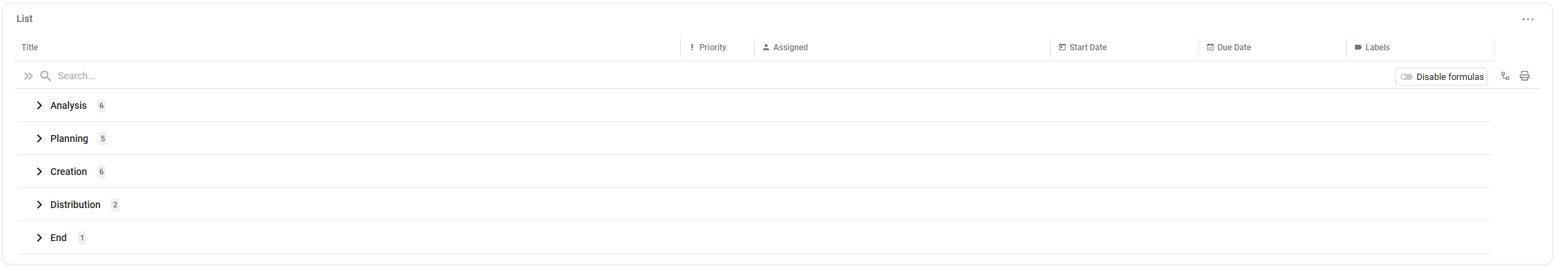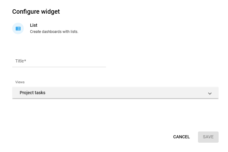 A dedicated view of the tasks can be created for the list widget.