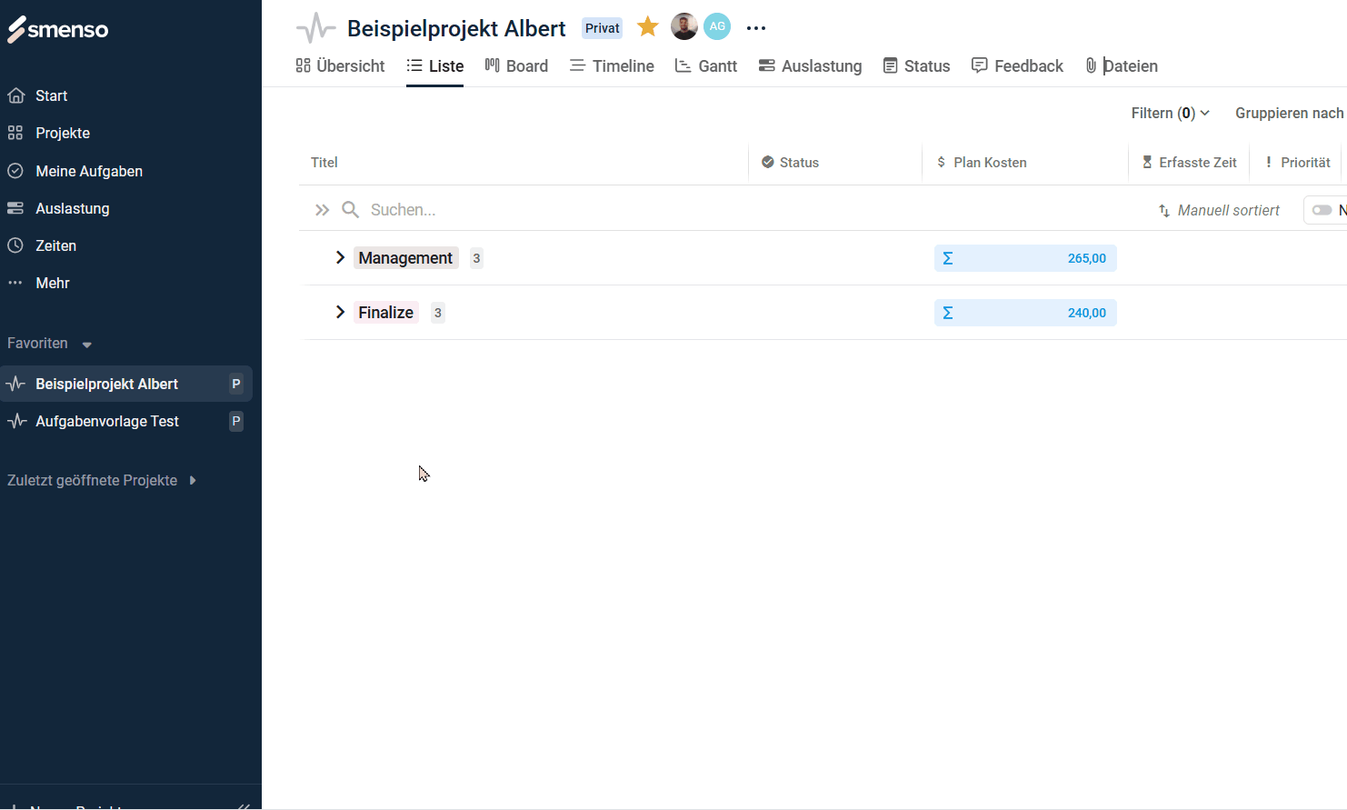 In smenso, you can create projects with all relevant master data and edit them at any time later. Project master data helps you structure and categorize projects and evaluate them cleanly.